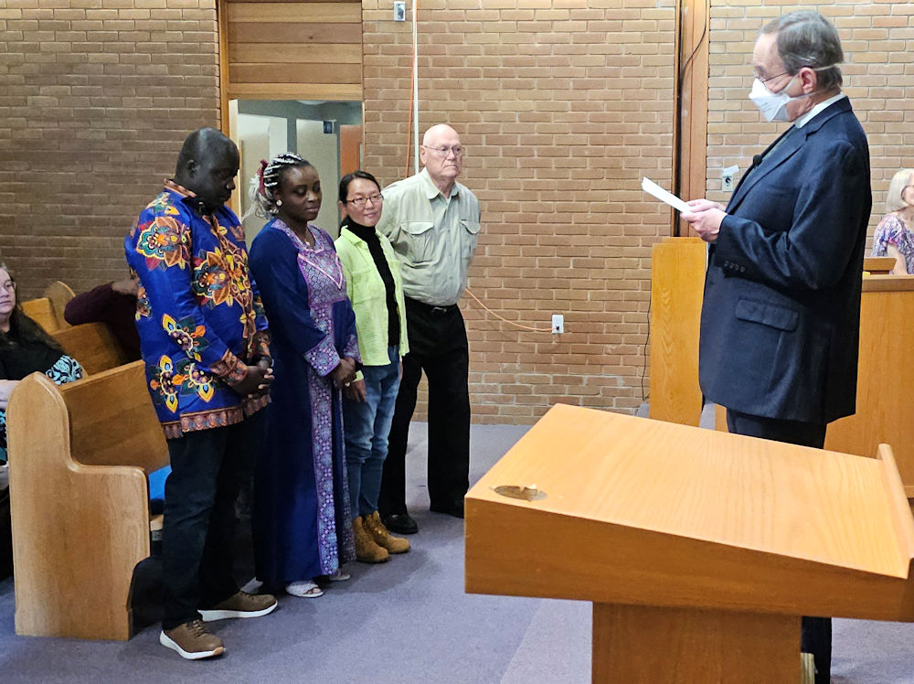 by formally becoming a congregation and ordaining two elders. Pictured here are those who took part in the ceremony: